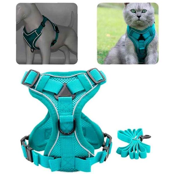 - La seguridad es una prioridad, por eso nuestro arnés está equipado con bordes reflectantes estratégicamente ubicados. Estos bordes garantizan que tu perro sea visible incluso en condiciones de poca luz, reduciendo el riesgo de accidentes durante los paseos nocturnos o en áreas con tráfico.