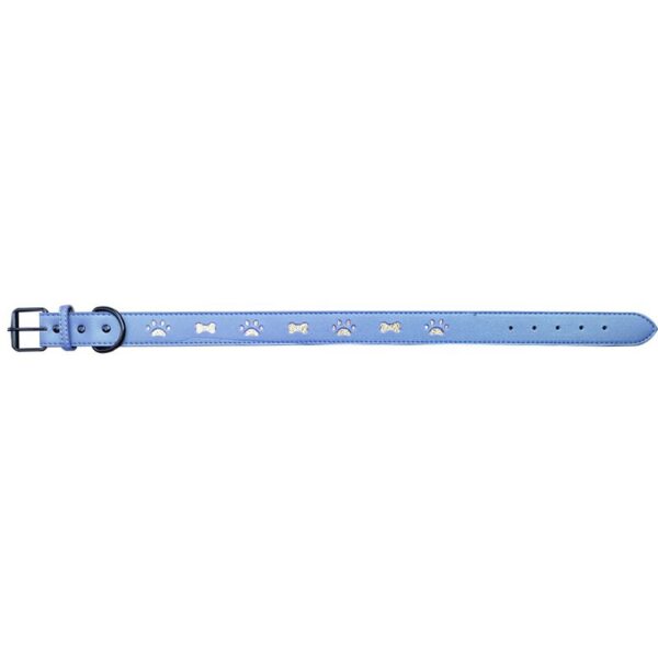 Collar Perro Grande XL Diseño Dorado, Cuero sintético bajo relieve en Glitter dorado, diseño de figuras de patitas de perro y huesitos. Herrajes de calidad.