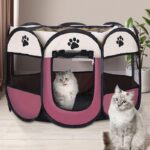 - Espacio suficiente para la seguridad: hay 8 lados de este parque de juegos de tela y cada lado está cubierto con malla, lo que garantiza la máxima ventilación y comodidad para las mascotas en el interior y asegurarse de que no habrá olor peculiar.