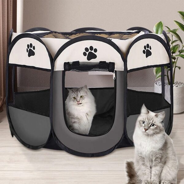 - Portátil y ligero: este parque de juegos para mascotas adopta un diseño plegable, se monta y se pliega en segundos.