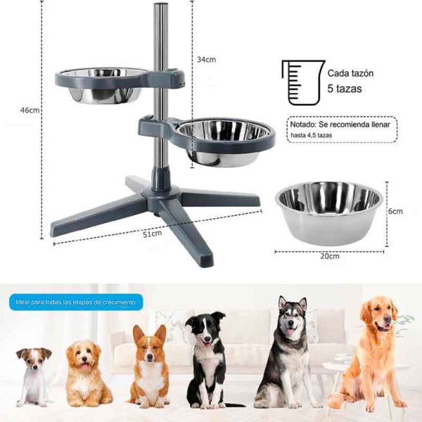 Este Plato Alto para Perro Ajustable cuenta con dos compartimentos de acero inoxidable ideales para separar alimento y agua, perfecto para tutores de más de un perro o simplemente para mantener el orden. Su altura es completamente ajustable, lo que permite adaptar el comedero a diferentes razas, tamaños o etapas de vida (desde cachorro hasta senior).