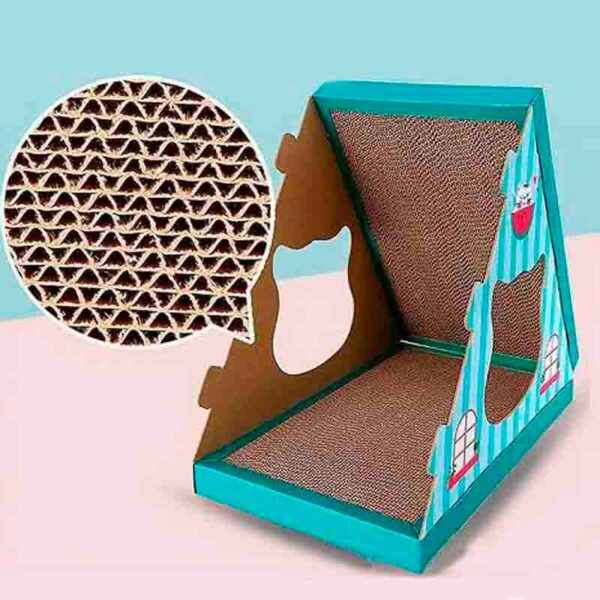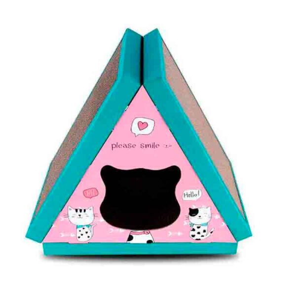 Rascador para gato Triangular con forma de casa es el producto ideal para tu gatito, ya que ofrece un lugar seguro de juego, para arañar o dormir.