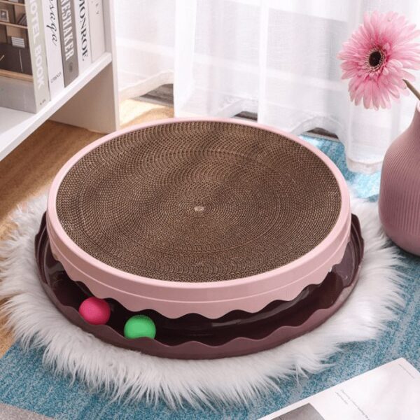 Rascador para Gatos Interactivo es un juguete para mascotas 2 en 1 para divertirse. La tabla de rascar central permite que los gatos arañen y muerdan. Las pelotas de persecución también son juguetes para gatos. Las bolas de juguete para gatos no se tiran fácilmente, cuando el gato atrapa la pelota con patas, la pelota rodará alrededor de la pista, mantendrá a tus gatos ocupados y entretenidos. J Mantén a tus gatos saludables y divertidos jugando, ellos amarán este rascador.