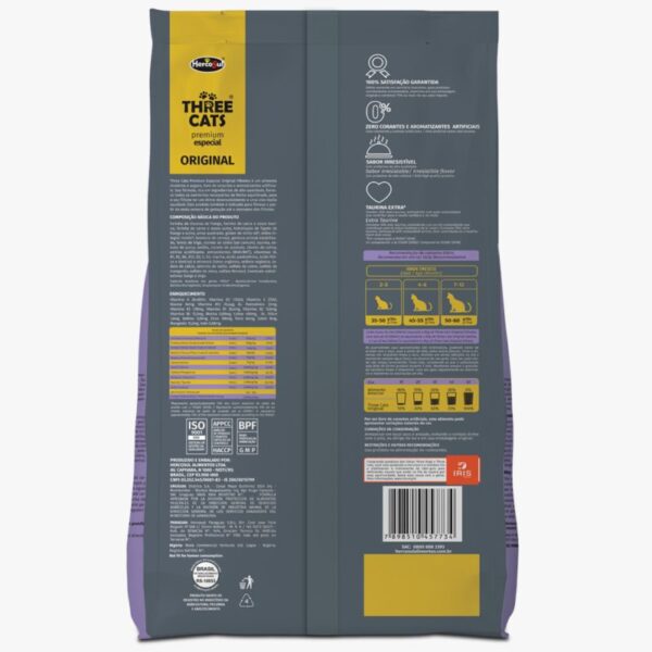 La línea Three Cats Original está elaborado para proporcionar los nutrientes necesarios para carnívoros estrictos como los gatos, garantizando el correcto desarrollo de gatitos y la excelente mantención de gatos adultos. Libre de colorantes y aromatizantes artificiales, con minerales controlados para cuidar la salud urinaria. Three Cats Original es un alimento de alto rendimiento, con una insuperable relación costo-beneficio.