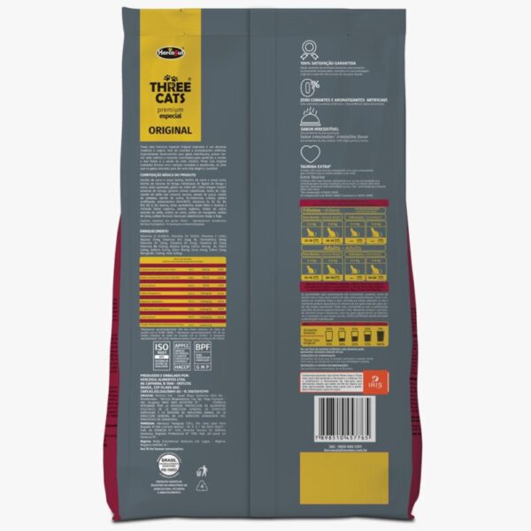 La línea Three Cats Original está elaborado para proporcionar los nutrientes necesarios para carnívoros estrictos como los gatos, garantizando el correcto desarrollo de gatitos y la excelente mantención de gatos adultos. Libre de colorantes y aromatizantes artificiales, con minerales controlados para cuidar la salud urinaria.